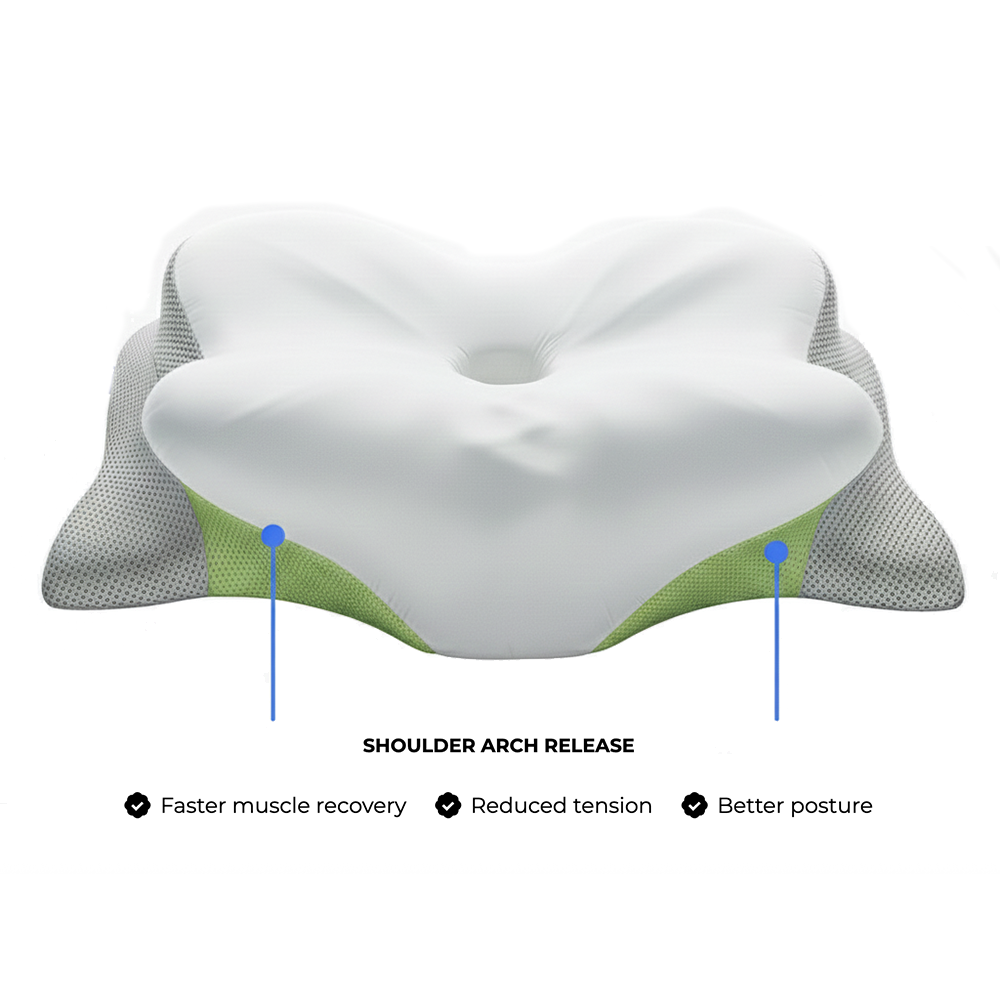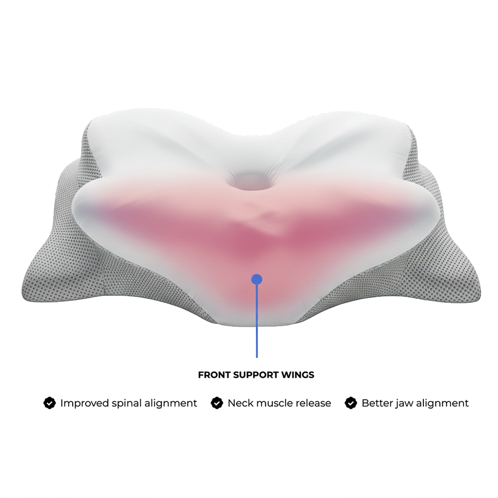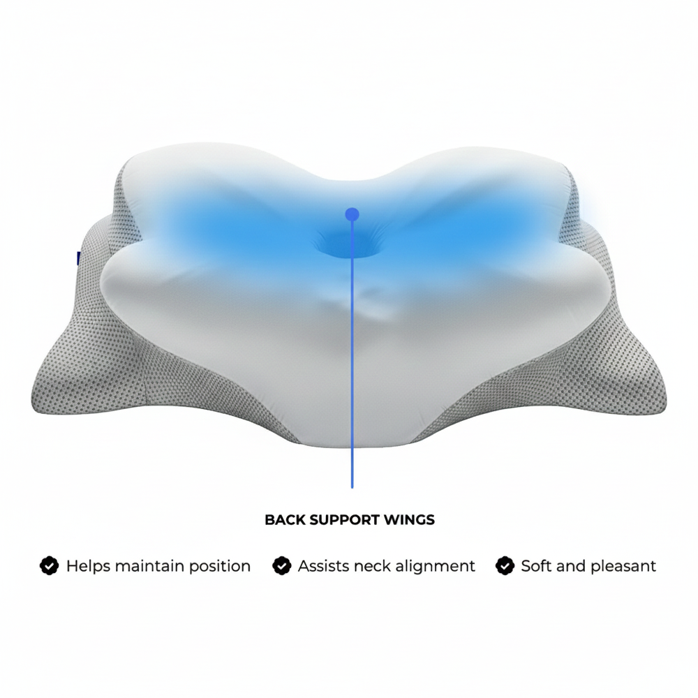 Dreamer's Sleep Well Pillow’s butterfly design combines ergonomic support with adjustable height, so it adapts to your body instead of forcing you into the wrong position.